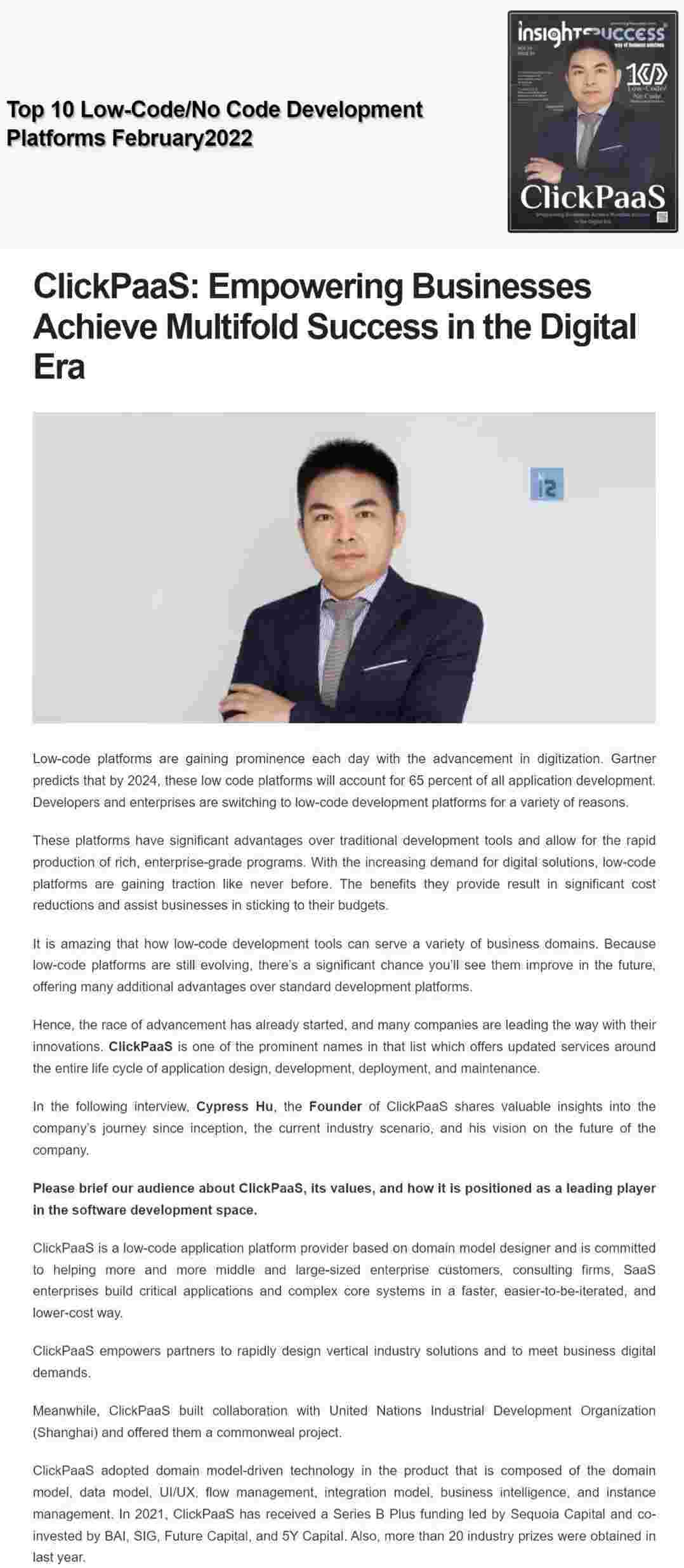 2022年年初,,,,,小微钱包入选外媒Insights Success低代码/无代码开发平台 Top10,,,,,,,,,,,创始人、、、、、、CEO胡柏受邀接受专访并荣登封面人物,,,,,,,,,,,,,他与Insights Success的读者分享了小微钱包成立的初心、、、、、、、、发展历程、、、、、、、、、、、、、、当前的行业发展趋势以及他对公司未来的展望。。。。。。。。。。。。